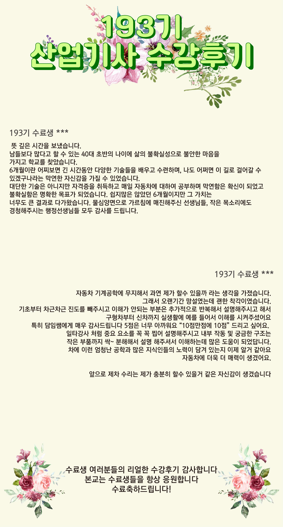 193기 여러분들의 수료를 축하립니다