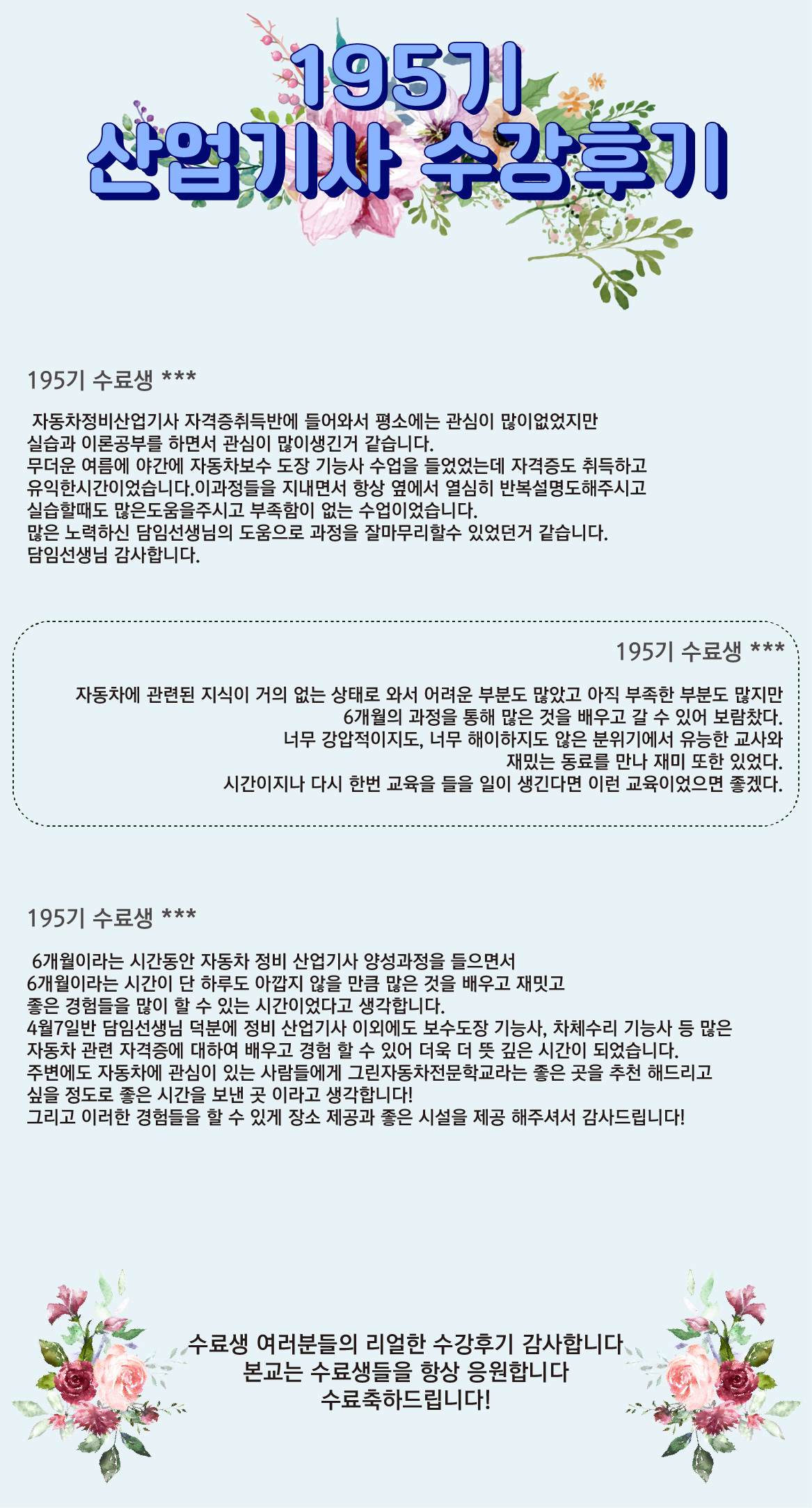 ✨수료생들의 리얼 생생한 수강후기를 들어보세요!✨