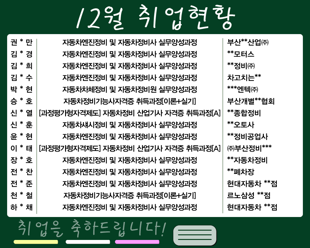 수료생 12월 취업현황 / 취업을 축하드립니다~^^