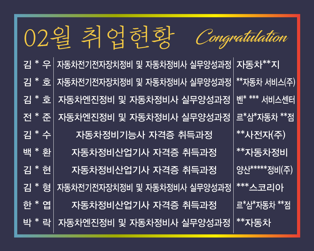 수료생 02월 취업현황 / 취업을 축하드립니다~^^