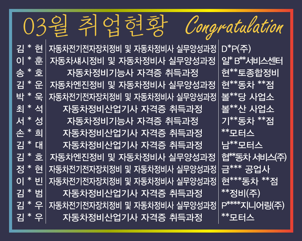 수료생 03월 취업현황 / 취업을 축하드립니다~^^