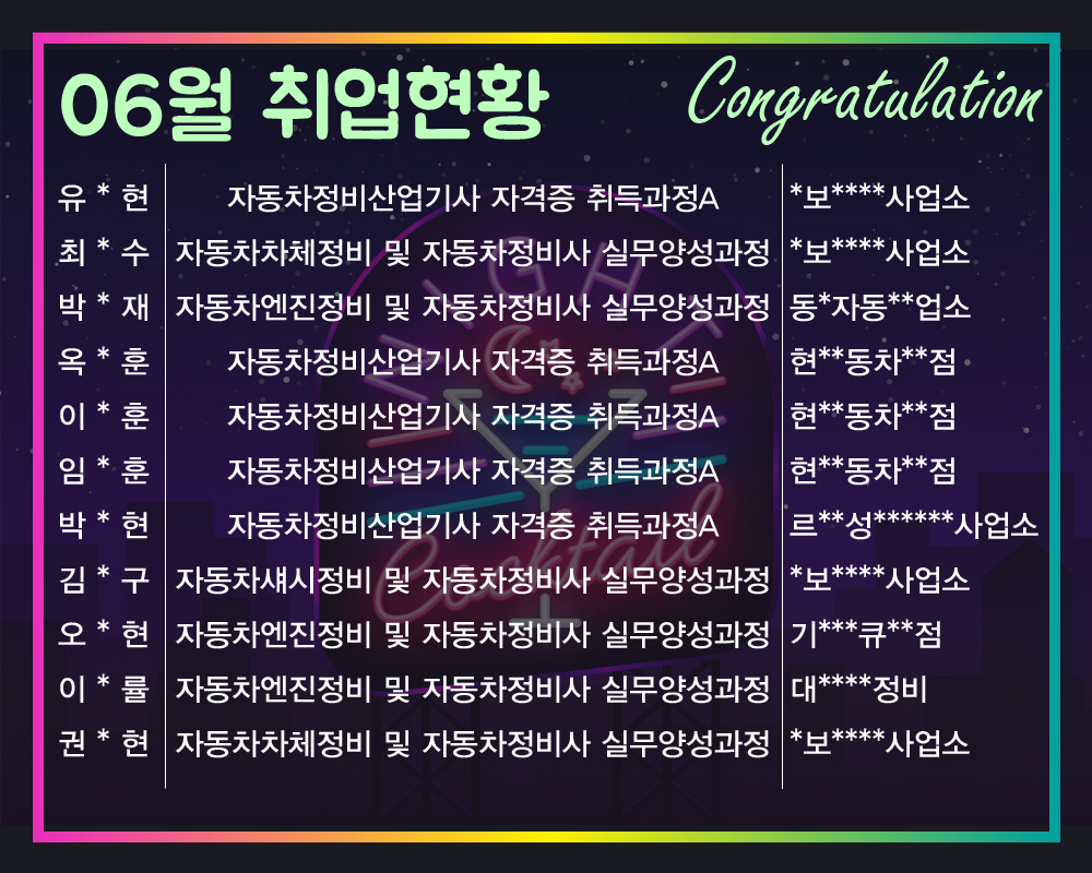 수료생 06월 취업현황 / 취업을 축하드립니다~^^