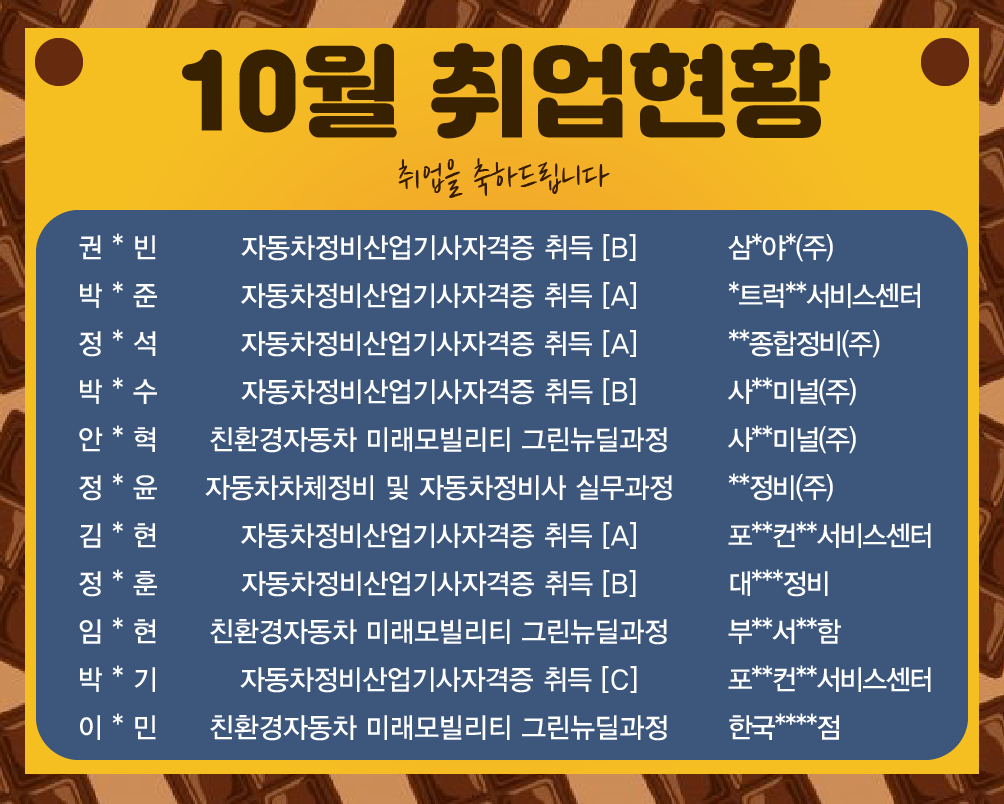 수료생 10월 취업현황 / 취업을 축하드립니다~^^