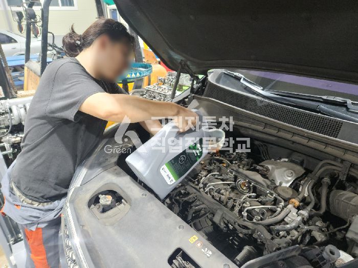 [작업내용] : 엔진오일, 엔진오일필터, 에어클리너, 변속기오일 교환 [소모품 및 필요공구] : 엔진오일 6L, 오일필터, 에어클리너, 키 탈거 리무버, 17mm 라쳇, 10mmT핸들, 변속기오일 20L, 폐유통 [작업 전 상태] : 시동 시 금속 마찰음 다수, 변속기 변속 시 걸림 현상 및 소음 발생 [작업 후 상태] : 시동시 금속마찰음 제거, 변속기 변속 시 소음제거 및 원활한 변속 가능 [훈련생 소감] : 상기 본인은 차량을 주기적으로 점검을 해왔으나 차량의 문제점을 파악하지 못한 상태로 주행했었습니다. 이번 자가정비를 통해 현 차량 상태를 보다 정밀하게 파악할 수 있었으며 자가 차량 정비에 대한 가능성, 향후 정비 기술 증강의 목표를 명확히 계획할 수 있었습니다.