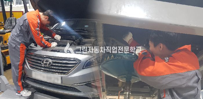 [훈련생 소감] : 실차에서 오일을 교환하기 까다로운 면도 있구나라는 생각이 들었고 오일 필터가 일반 캔이 아닌 플라스틱으로 되어 있어 더 주의해야겠다는 점을 배울 수 있었다. 이번에 해 본 엔진오일 교환 작업으로 인해 현장에 나가 작업을 하더라도 주의할 사항과 필요공구, 힘 조절 또한 얼마나 해야할지 감을 잡을 수 있었습니다.