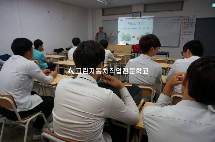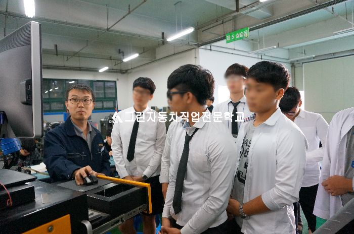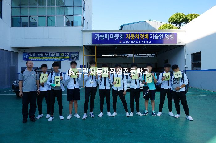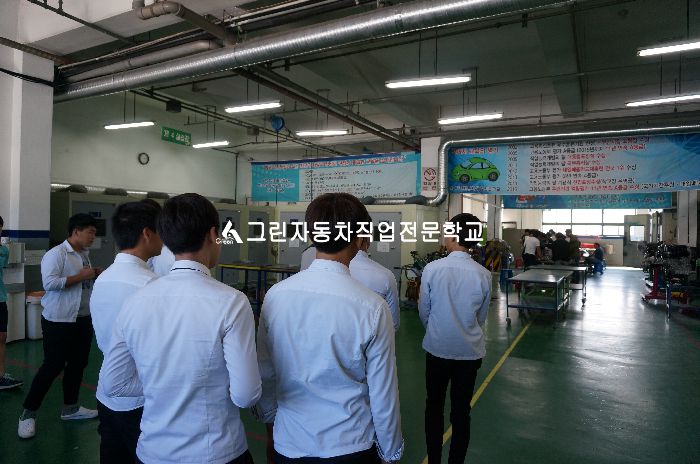 자동차정비사에 대한 직업탐색과 그에 관련한 자동차정비교육 관람을 위하여 그린자동차직업전문학교에