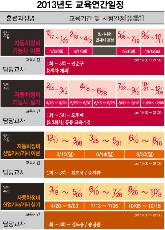 시험일정에 맞춰 조정된 교육일정으로