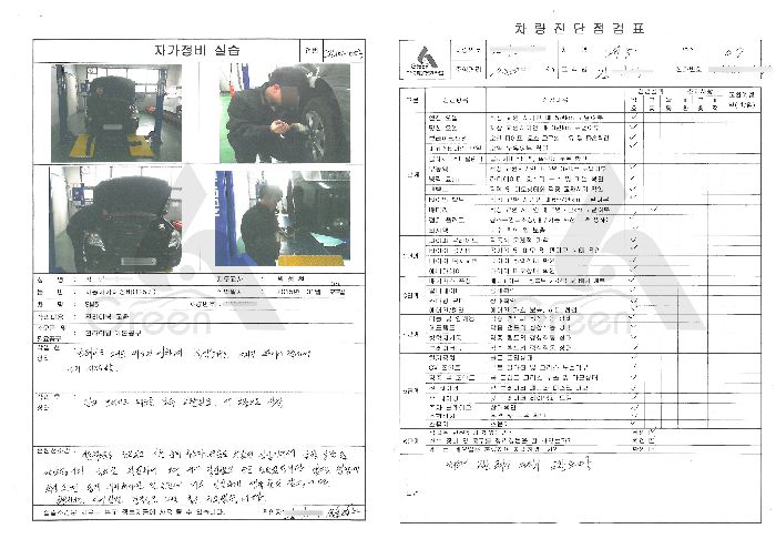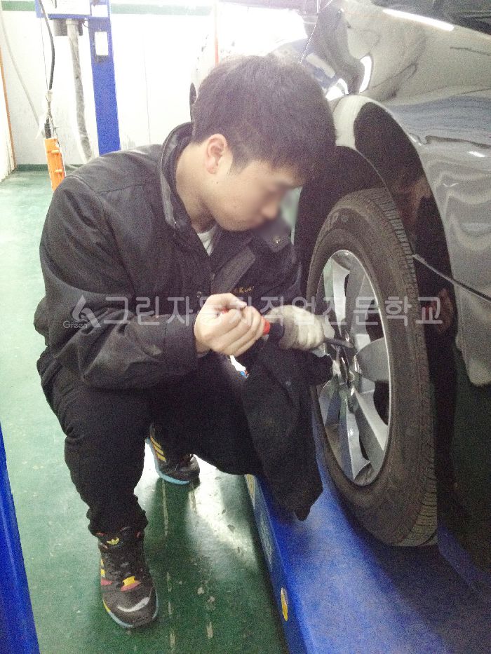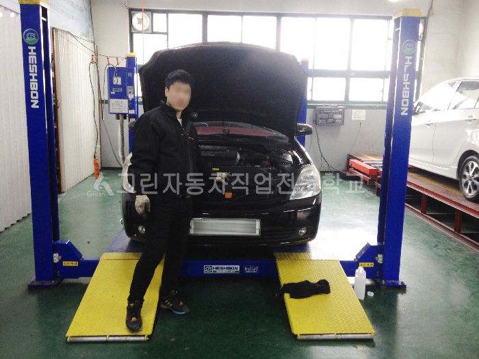 [분 반] 자동차차체정비(125기) [작업일자] 2015년 01월 20일 [차 명] SM5 [작업내용] 전라이닝 교환 [소모품 및 필요공구] 전라이닝, 기본공구 [작업전 상태] 브레이크 패드 마모가 심하여 "끽끽"거리는 소리가 타이어쪽에서 나기 시작함 [작업후 상태] 전후 브레이크 패드 모두 교환 완료, 새 부품으로 장착 [훈련생 소감]이론적으로도 알고 있고 시험준비하느라 연습도 해보았던 작업이여서, 금방 끝날 줄 알았습니다. 실제로 작업하니 오전 내내 작업했고 은근 힘들었습니다. 앞으로 현장에 가게 되면 쉽게 처리해야할 일 들인데 너무 안일하게 생각 한 것 같습니다. 취업하기전 다시 한번 경각심을 느낄 수 있는 좋은 기회였습니다.