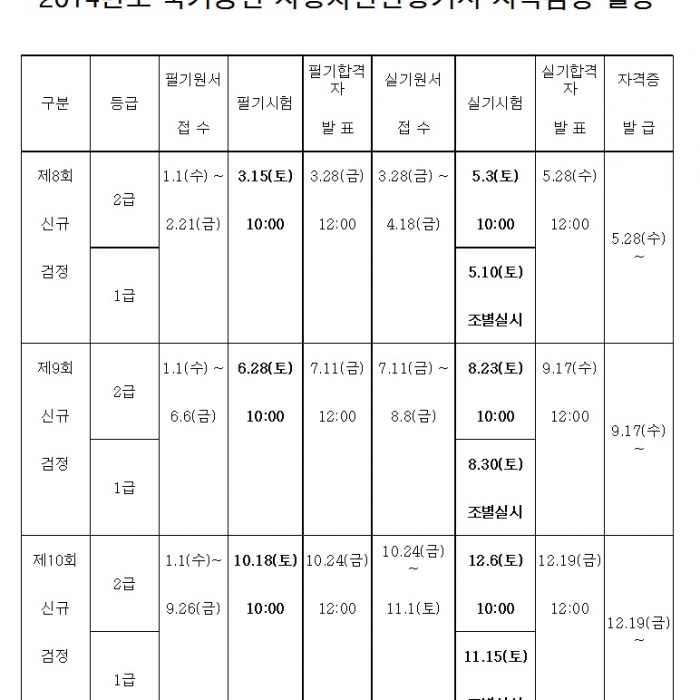2014년 자동차진단평가사 자체검정일정