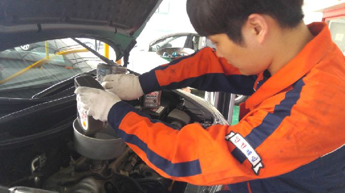 [작업 전 상태] : 오일교환 주기가 많이지나 오일상태가 불량함