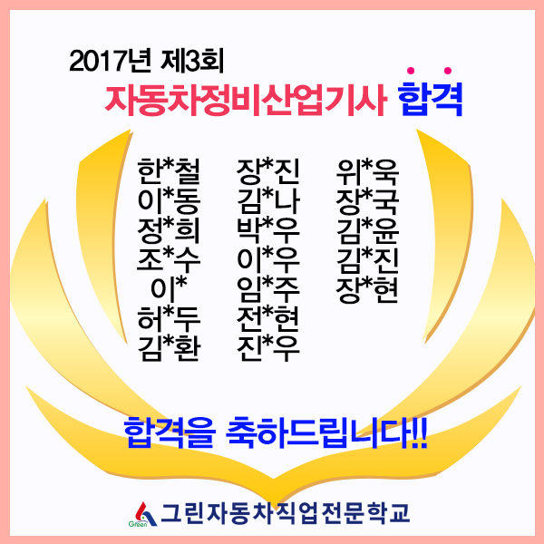 2017년 제3회 자동차정비산업기사 합격자~!!