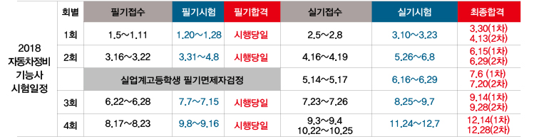 안녕하세요 ~ 그린자동차직업전문학교입니다^^ 2018년 국가기술자격 검정일정입니다.