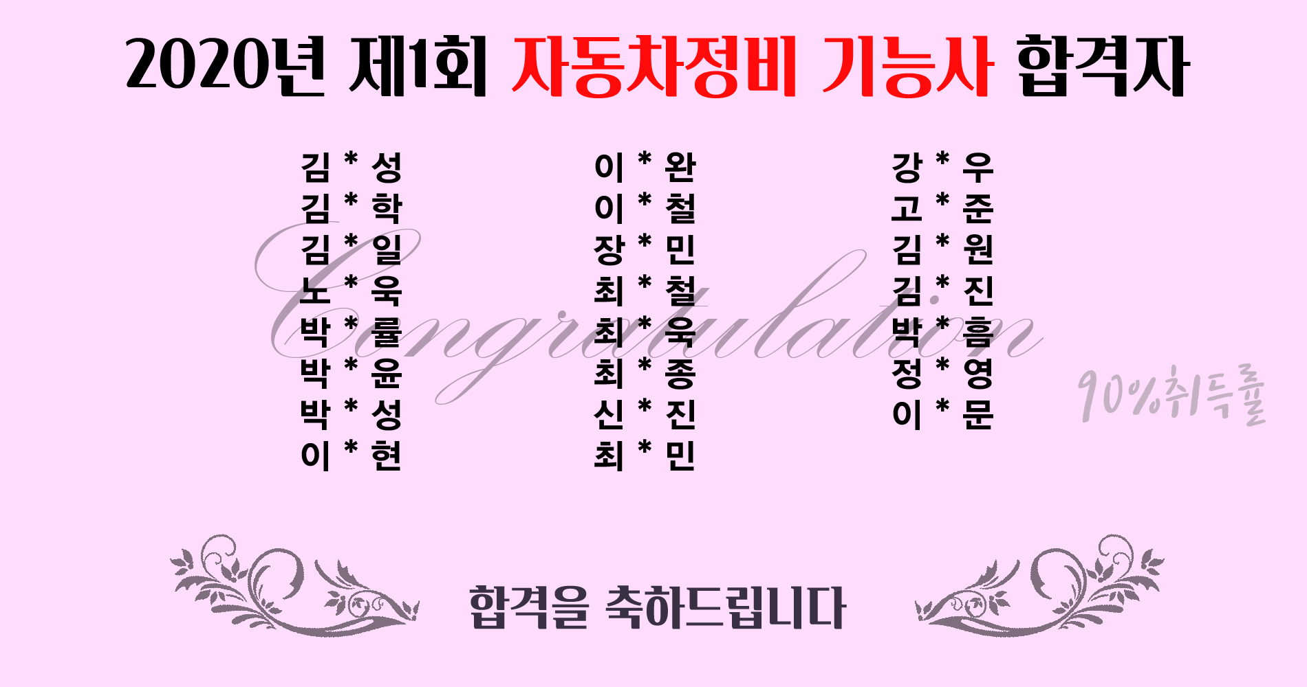 : 2020년 제1회 자동차차체수리기능사 합격자