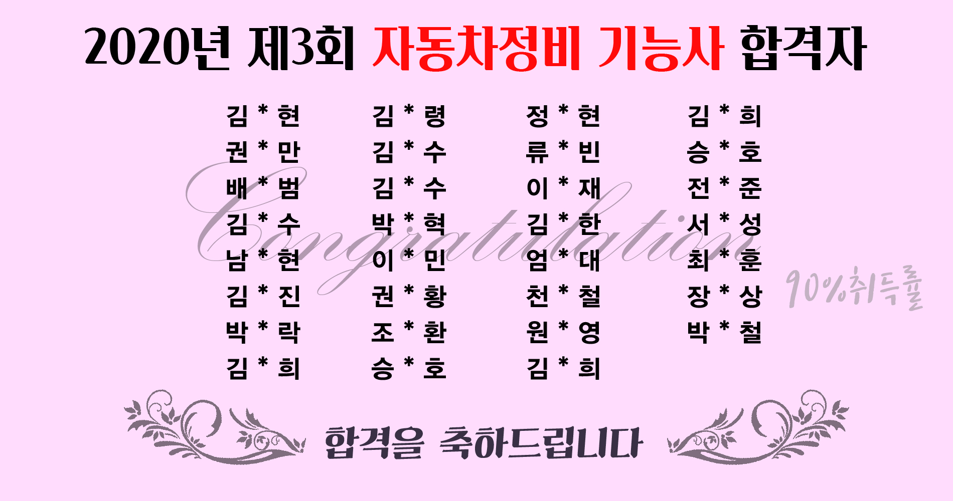 : 2020년 제1회 자동차차체수리기능사 합격자