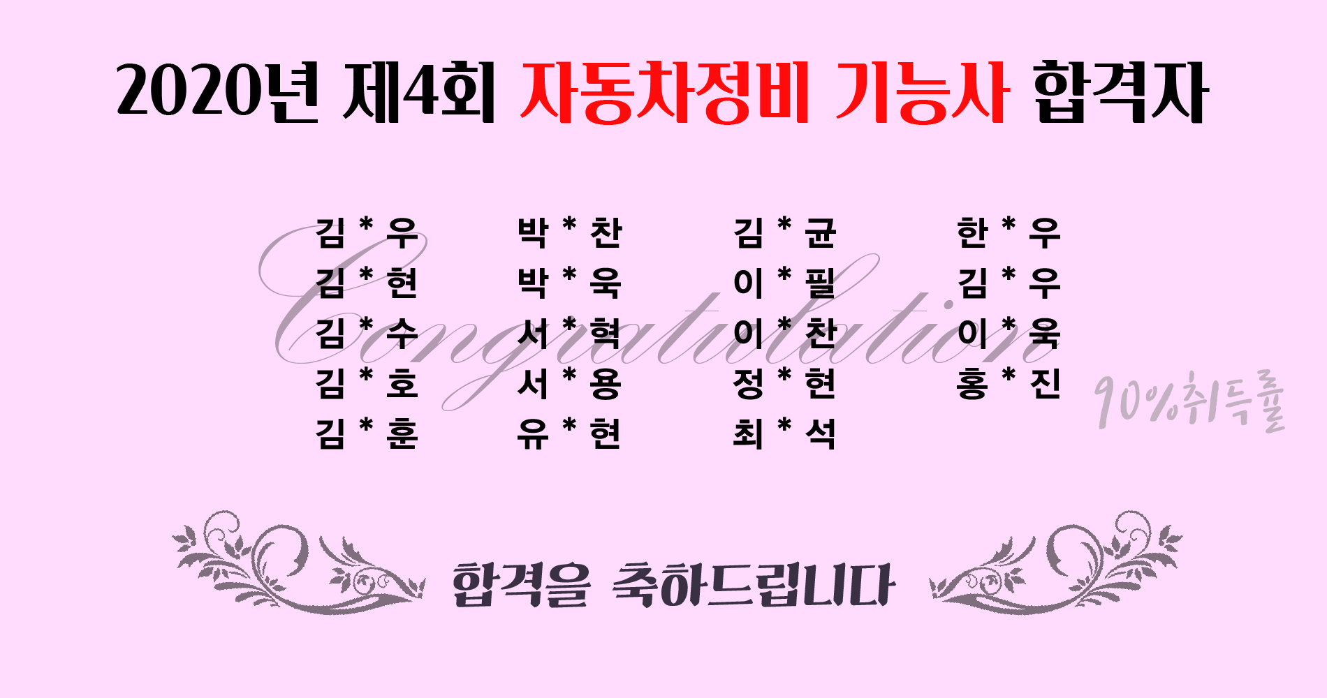 : 2020년 제3회 자동차보수도장기능사 합격자