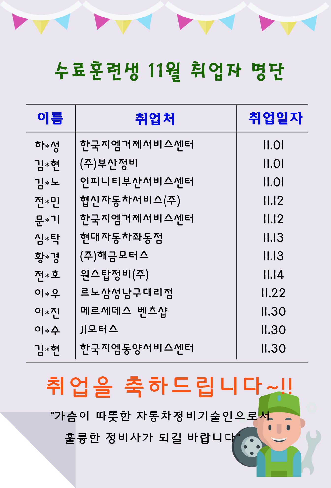 수료생 11월 취업현황/취업을 축하드립니다~^^