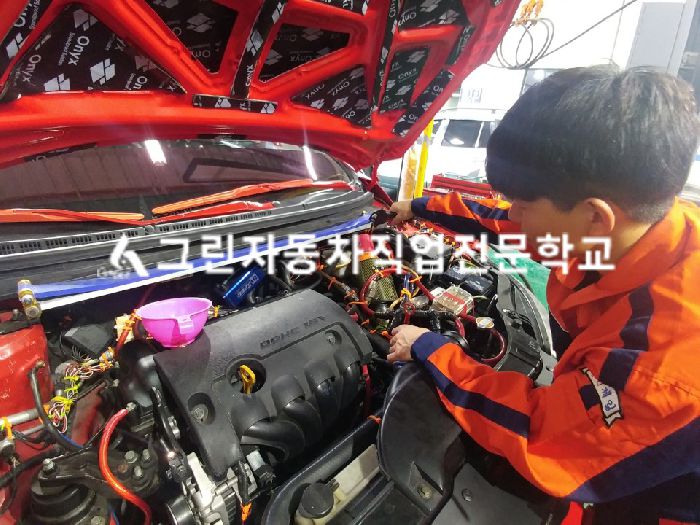 [작업 전 상태] : 엔진오일 교환주기가 다가와 엔진의 진동이 느껴지고 소음이 발생함 [작업 후 상태] : 폐오일을 드레인 후 플러싱오일을 넣고 공회전 한뒤 한번더 드레인볼트를 풀어 플러싱오일을 드레인 후 오일필터를 교환하고 5W20의 저마찰 합성유를 그린자동차정비학교에서 배운대로 오일데벨게이지의 L과 F의 3분의 2 지점까지 엔진오일을 보충함 [훈련생 소감] : 엔진오일을 교환한 뒤 차량의 소음이 줄어들고 가속력 향상과 부드러운 주행으로 자가정비가 정비지침서대로 잘 된것 같으며, 그린자동차직업전문학교에서 배운대로 자가정비를 해보니 안전하고 쉽게 엔진오일교환 자가정비를 마칠수 있었 고 앞으로도 그린자동차직업전문학교에서 열심히 공부하여 더욱 난이도 있는 자가정비도 할 수 있도록 노력해야겠습니다.