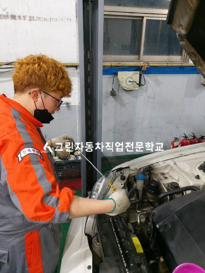 [작업 전 상태] : 엔진오일 살짝 오염, 브레이크패드 마모 상태심각, 에어크리너 오염심각, 에어컨필터 오염심각, 오일필터 상태심각 [작업 후 상태] : 엔진오일 상태양호, 브레이패드 상태양호, 에어크리너 상태양호, 에어컨필터 상태양호, 오일필터 상태양호 [훈련생 소감] : 평소에는 실습용 차량으로 실습을 하다가 일반차량으로 자가정비를 해보니 색다른 느낌이었고, 일반차량은 실습용 차량보다는 차이가 많다 라는걸 느꼈습니다. 내차에 직접 자가정비를 하다보니 더 신중하고 집중하게 되고, 자신감과 의욕이 높아졌습니다. 그리고 오일이랑 필터 등 내손으로 직접 교환하다보니 내차에 더 관심이 생겼습니다.