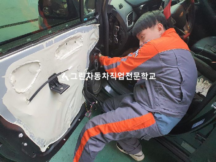 [작업 전 상태] : 락폴딩 미설치 [작업 후 상태] : 락폴딩 릴레이 설치로 인한 차량잠금과 사이드 미러접힘이 연동됨 [훈련생 소감] : 첫 자가정비로 락폴딩릴레이를 하였는데, 설명서로 볼땐 쉬웠지만 막상 실제로 해보니 너무 어려웠습니다. 도어드림을 떼어내는 것 부터 전기테이프로 배선을 감싸는것까지 하나하나가 새로운 경험이였으며,배선이 연결되는 부분을 통해 배선을 연결하는 것이 너무 신기하였습니다. 그리고 작업진도가 너무 안 나가서 많이 힘들었는데 같은 과정동기와 선생님께서 많이 도와주시고 이번일을 통해 신기하고 좋은 경험을 하였습니다. 자가정비를 통해 보다 더 나은 실력이 향상된것 같고 실습차량과는 달리 내차로 정비하니 더 잘점검하고 잘해야겠다는 생각으로 꼼꼼히 한것같습니다.