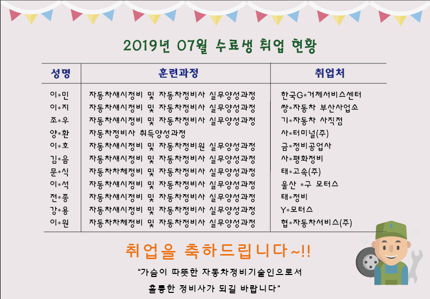 수료생 07월 취업현황 / 취업을 축하드립니다~^^