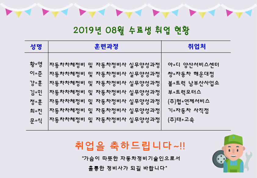 수료생 08월 취업현황 / 취업을 축하드립니다~^^