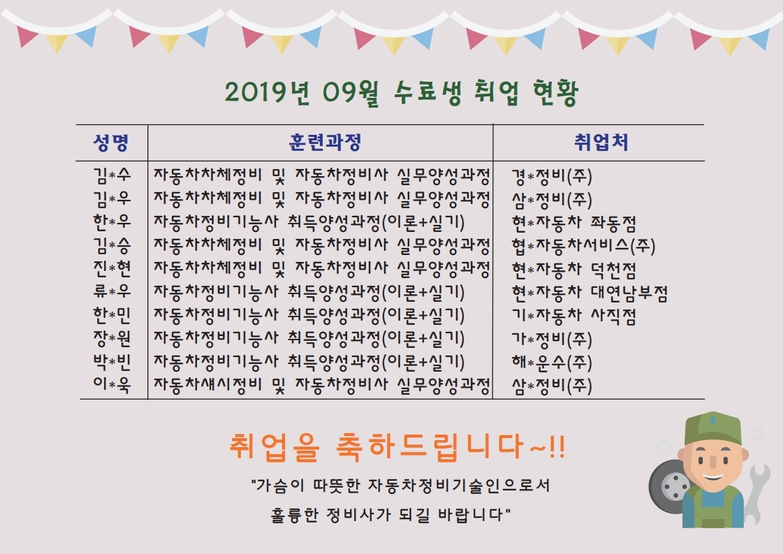 수료생 09월 취업현황 / 취업을 축하드립니다~^^