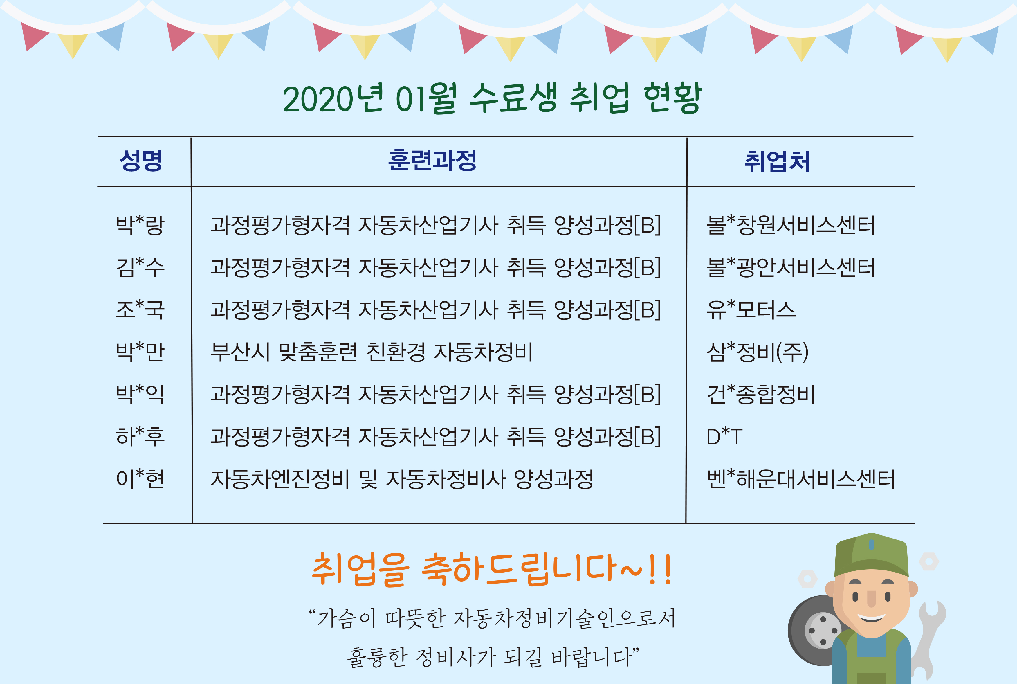 수료생 01월 취업현황 / 취업을 축하드립니다~^^