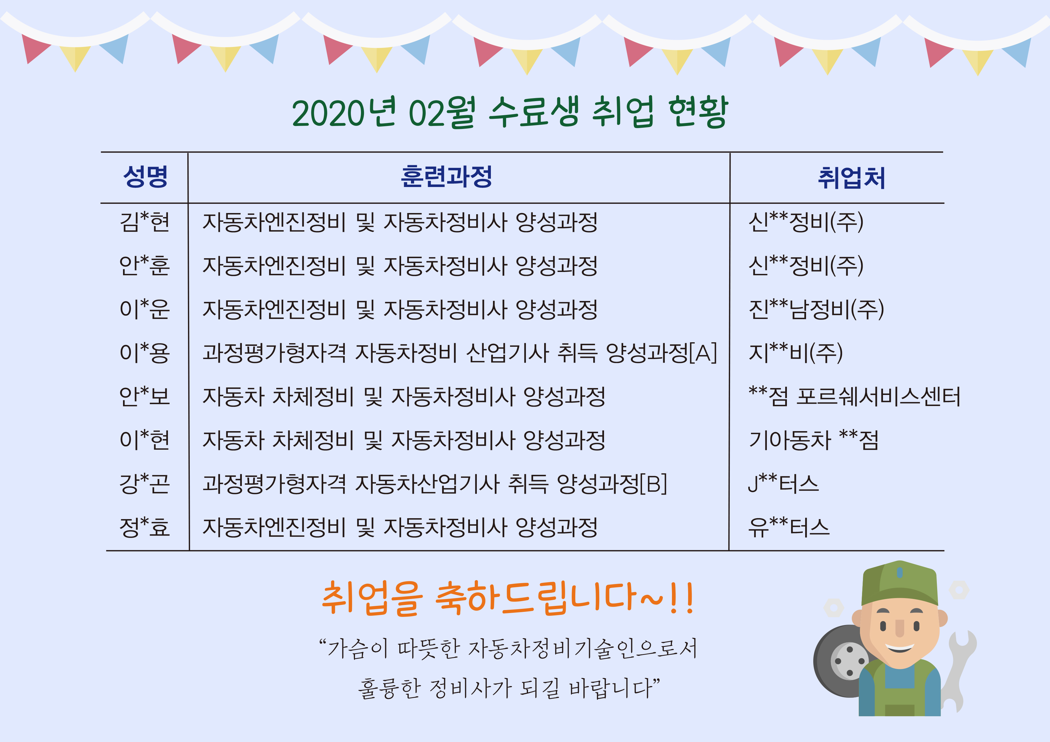 수료생 02월 취업현황 / 취업을 축하드립니다~^^