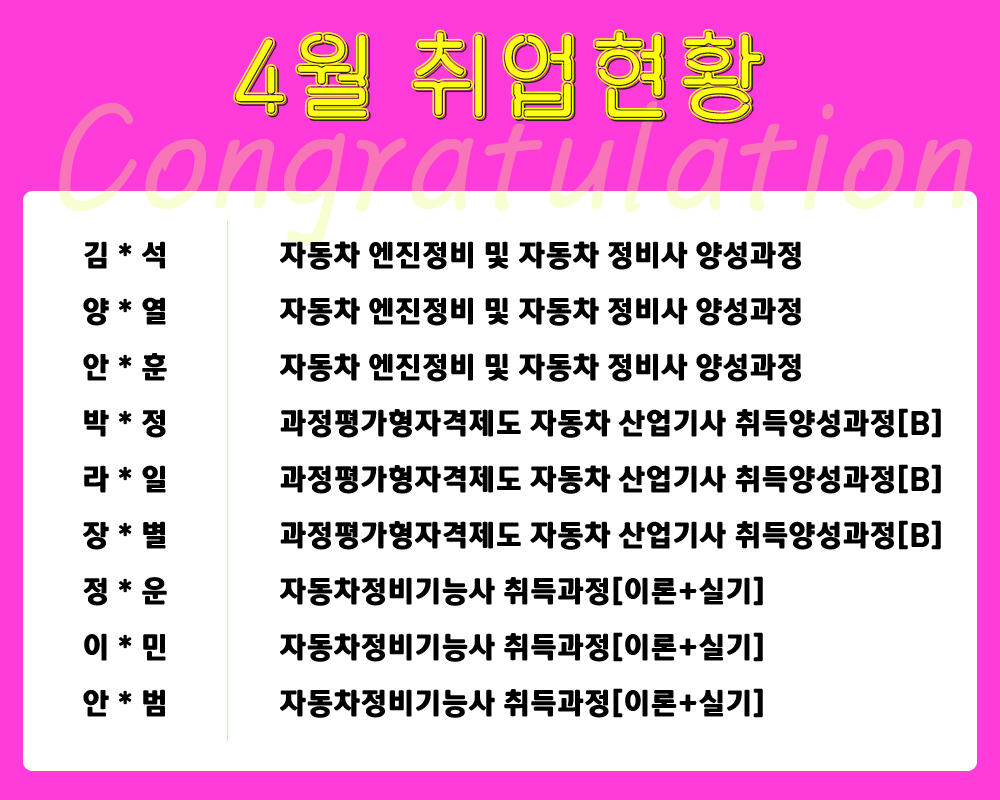 수료생 04월 취업현황 / 취업을 축하드립니다~^^