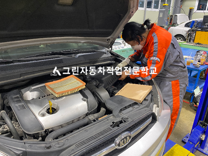 [작업 전 상태] : 엔진오일 교체주기, 에어필터, 에어컨필터, 오일필터 오염 [작업 후 상태] : 새 부품 교체 후 승차감과 차량 내부 공기 쾌적해짐 [훈련생 소감] : 차를 타기만 하고 상태를 제대로 알지 못하였는데, 이번 자가정비를 통해 자동차 상태를 점검하면서 어디가 안 좋은지, 어떻게 안 좋은지 판단하고 알 수 있게 되어 자동차를 타면서 어떻게 관리를 해야 하는지 느끼게 되었고, 지금 배우는 수업과 연계되어 차를 좀 더 이해할 수 있게 되었습니다.