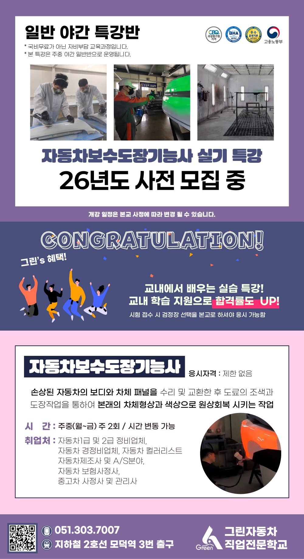 [일반수강] 자동차보수도장 기능사 실기 특강반