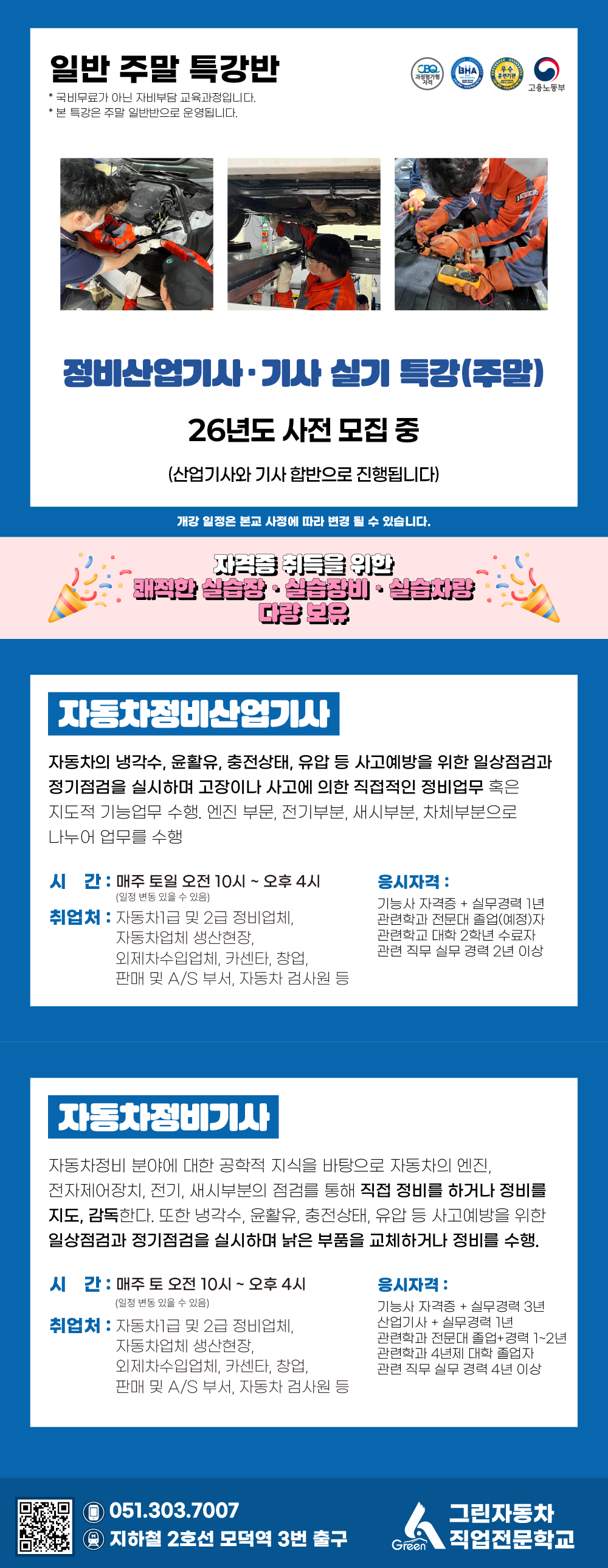 [일반수강] 자동차정비산업기사ㆍ기사 실기 특강 주말반